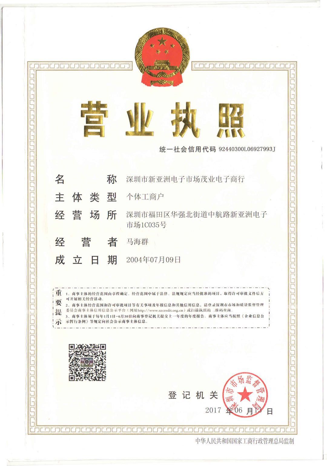 深圳市新亚洲电子市场茂业电子商行